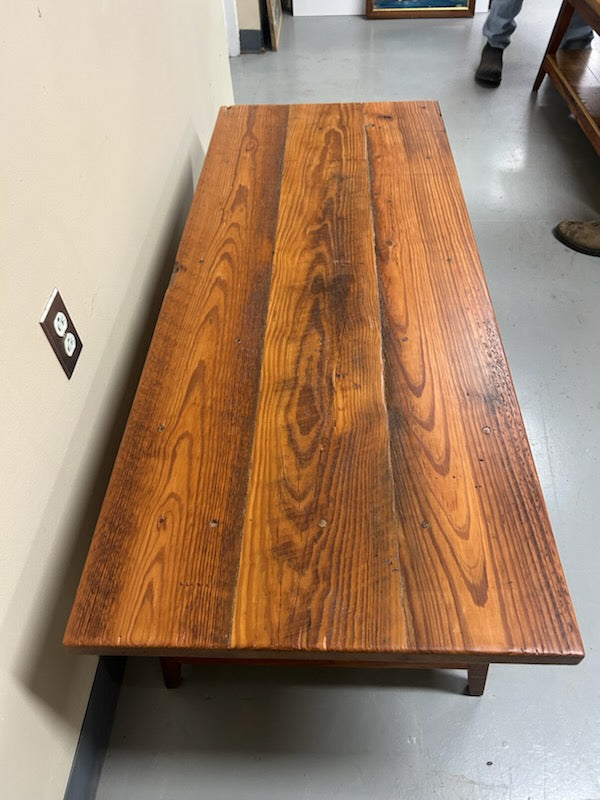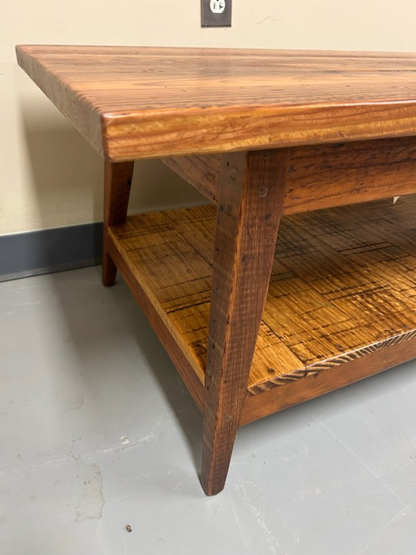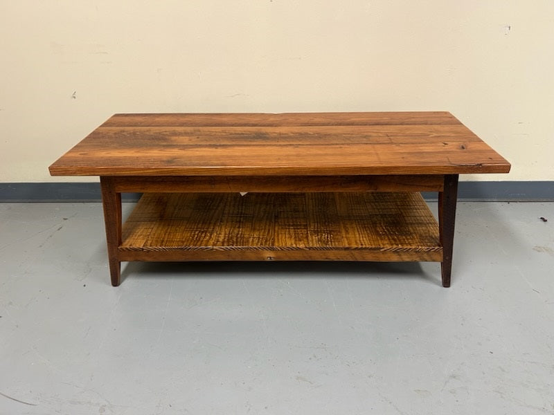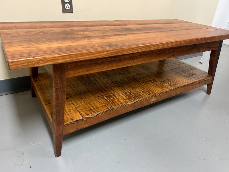 Coffee table with low shelf, made with antique heart pine from an 1860 homesite in Walterboro, SC