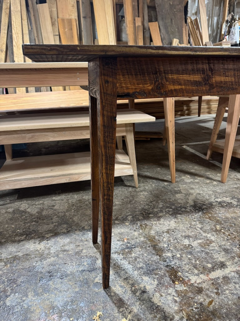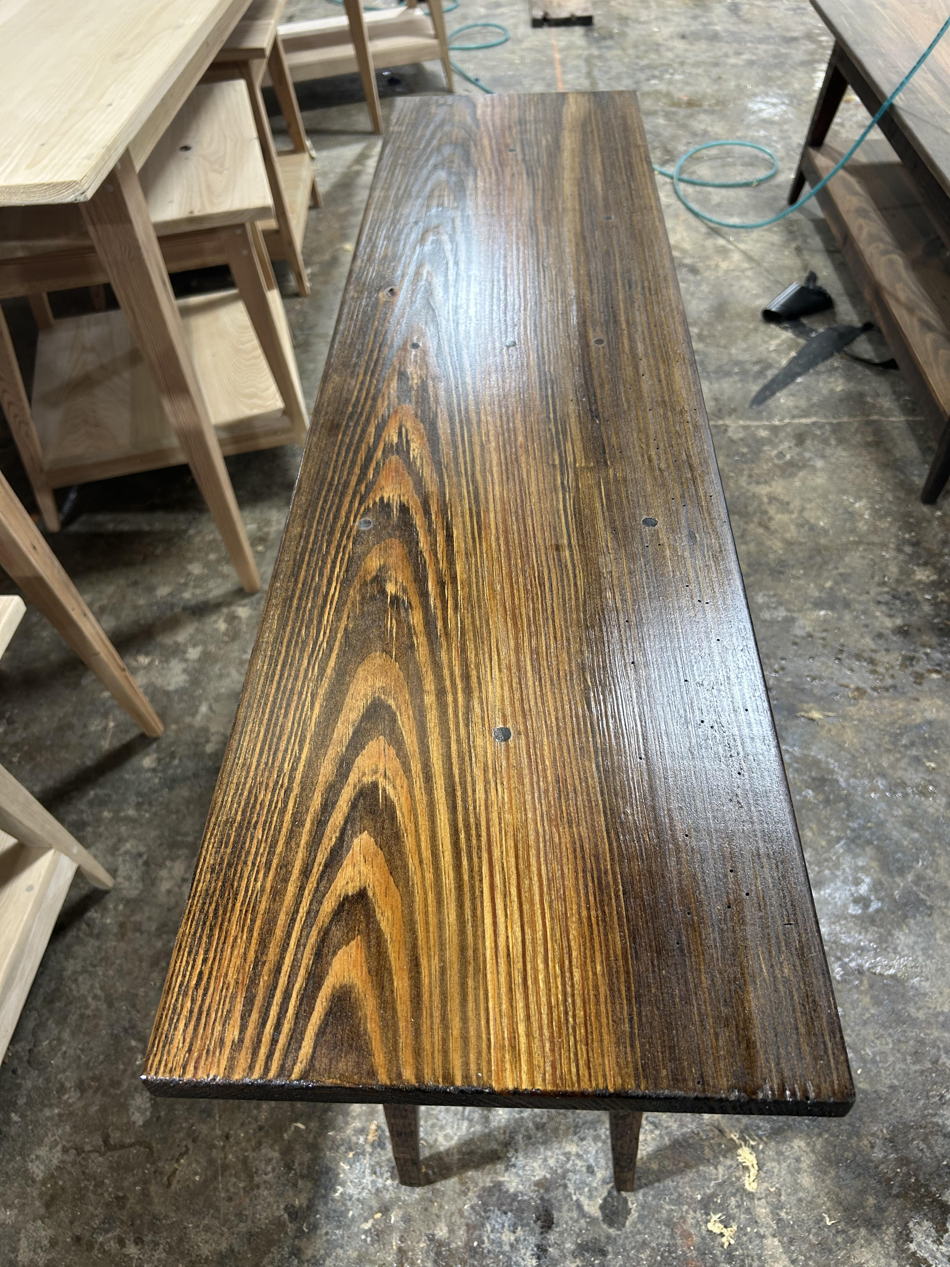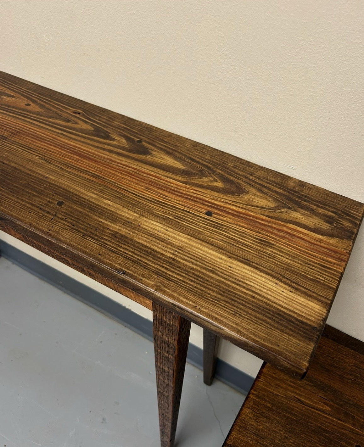 Clean/smooth yellow pine console table without shelf. Base is made with old Charleston, SC heart pine.