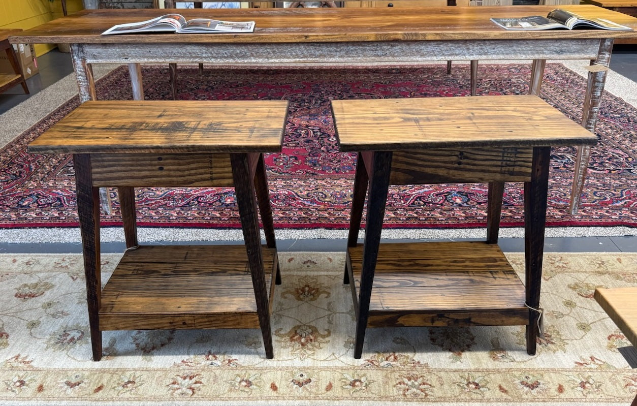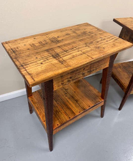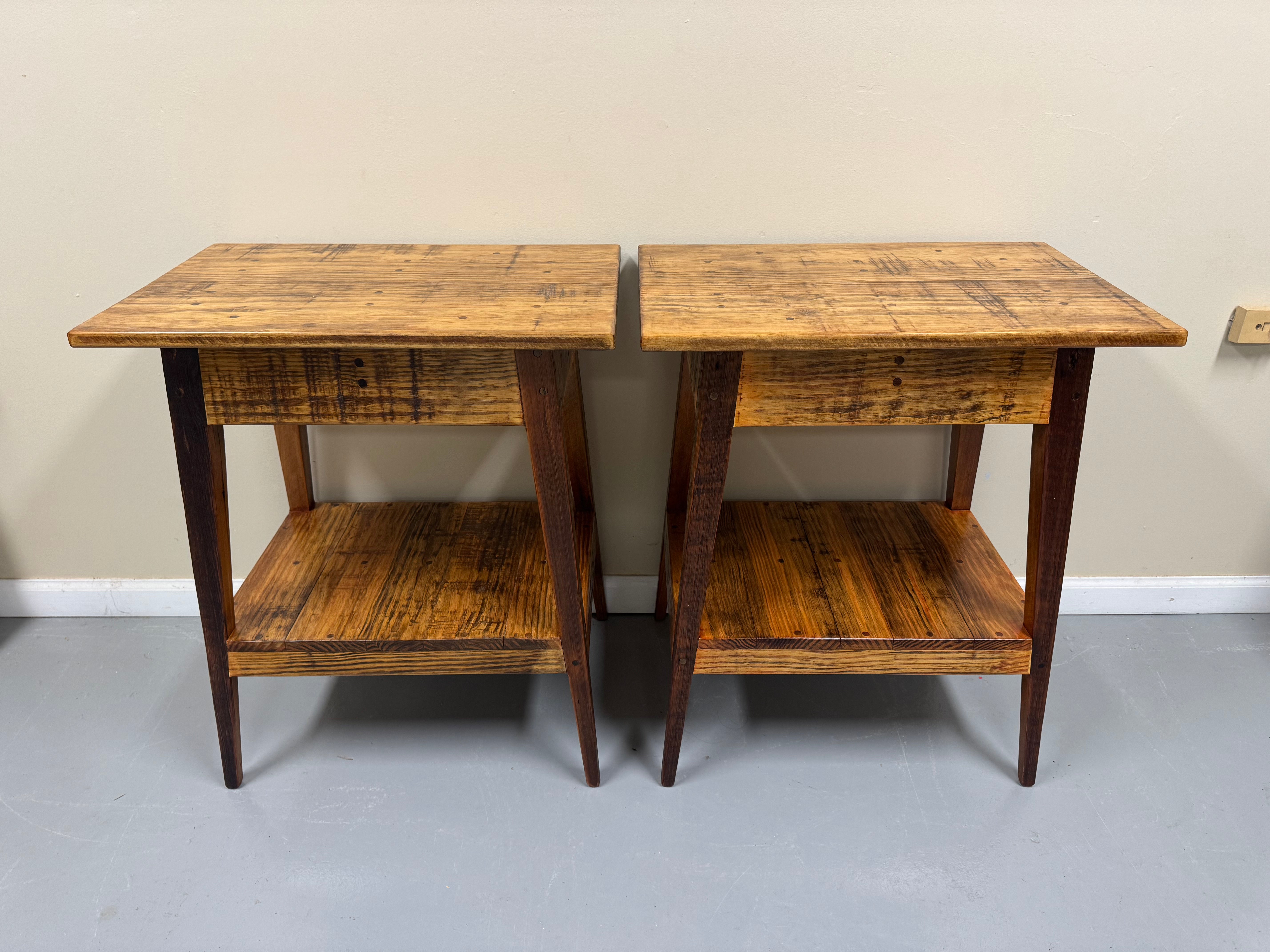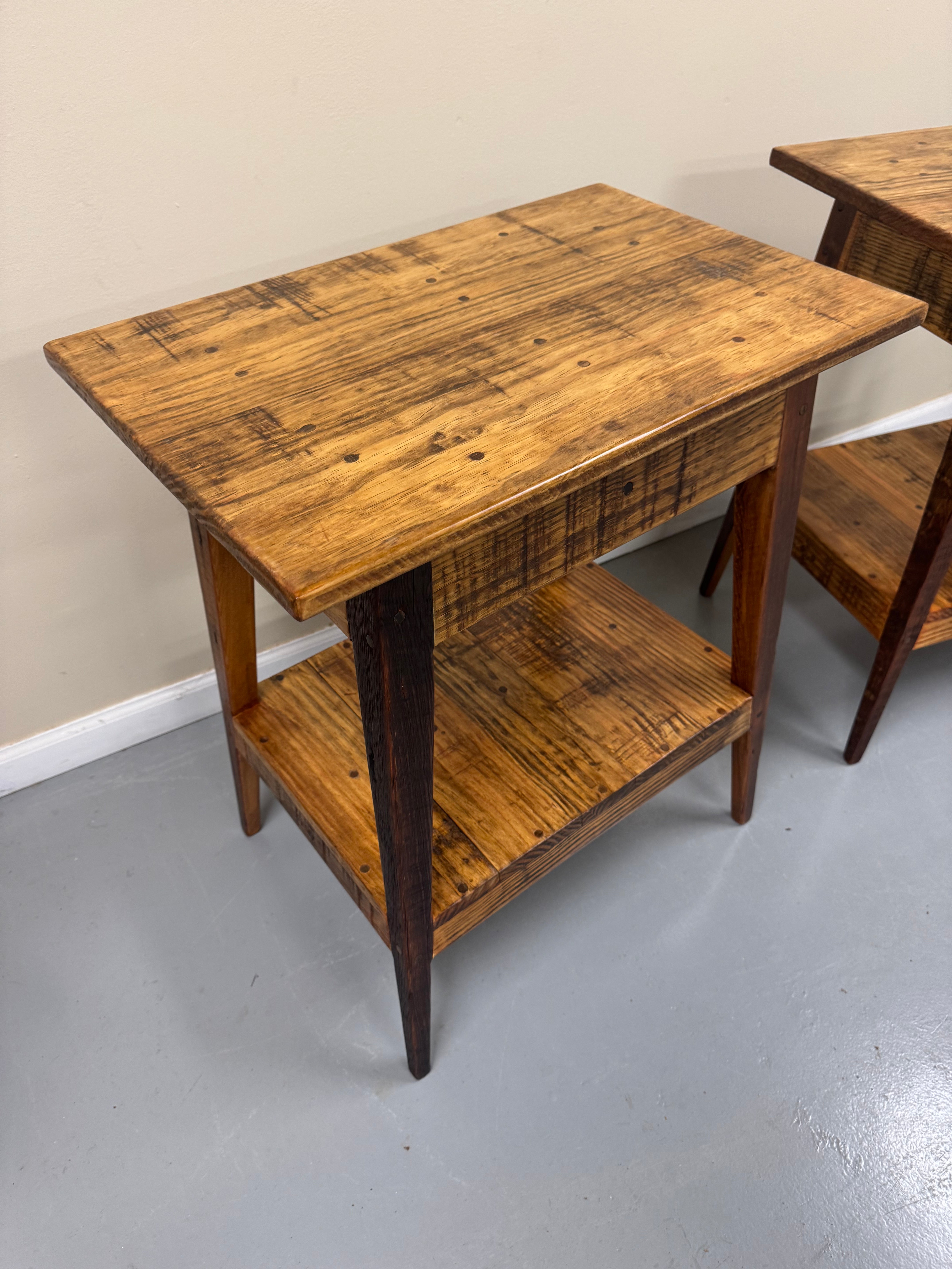 Side Tables - Pair, made with local yellow pine and antique heart pine - mid/low level shelf