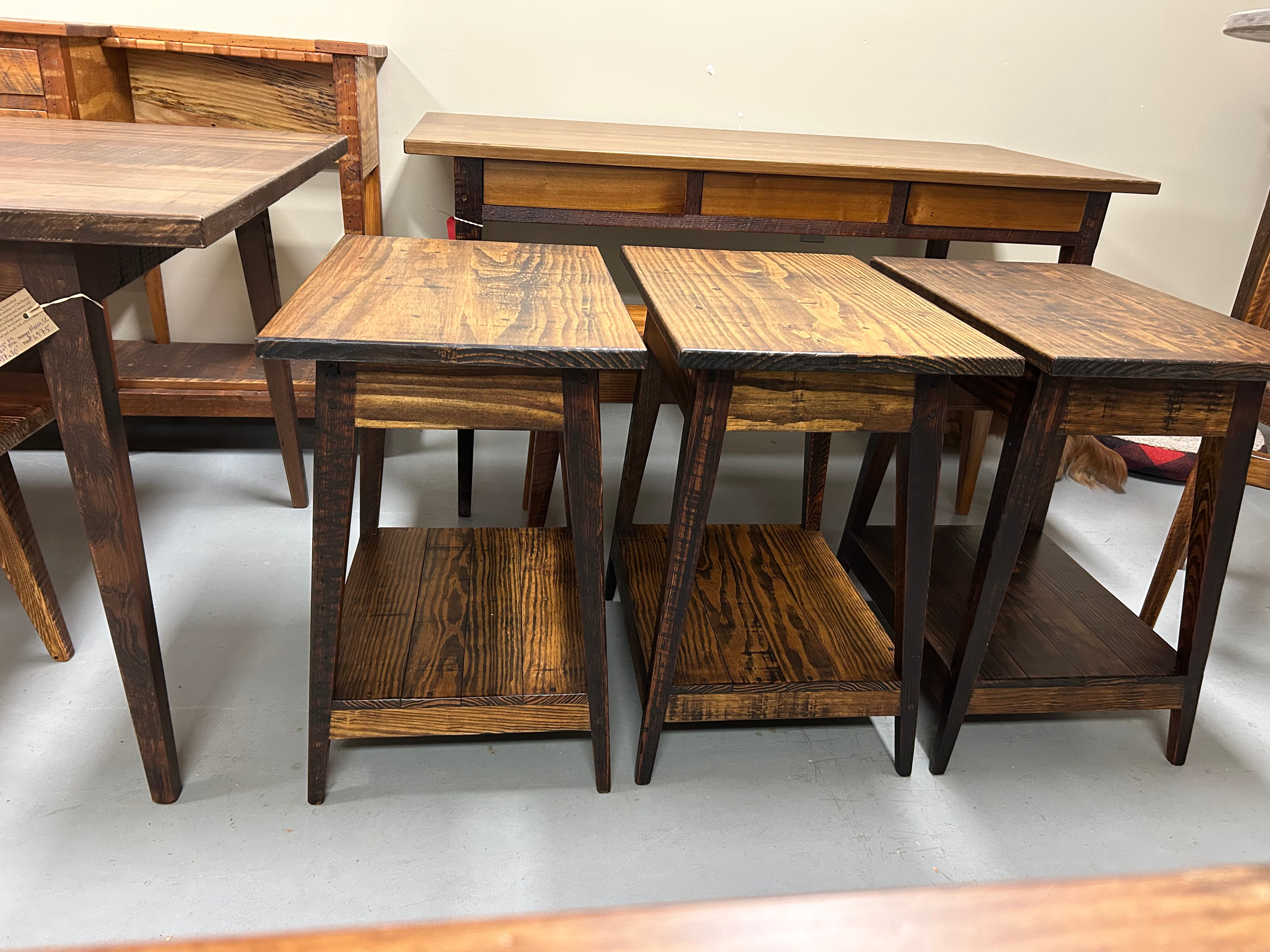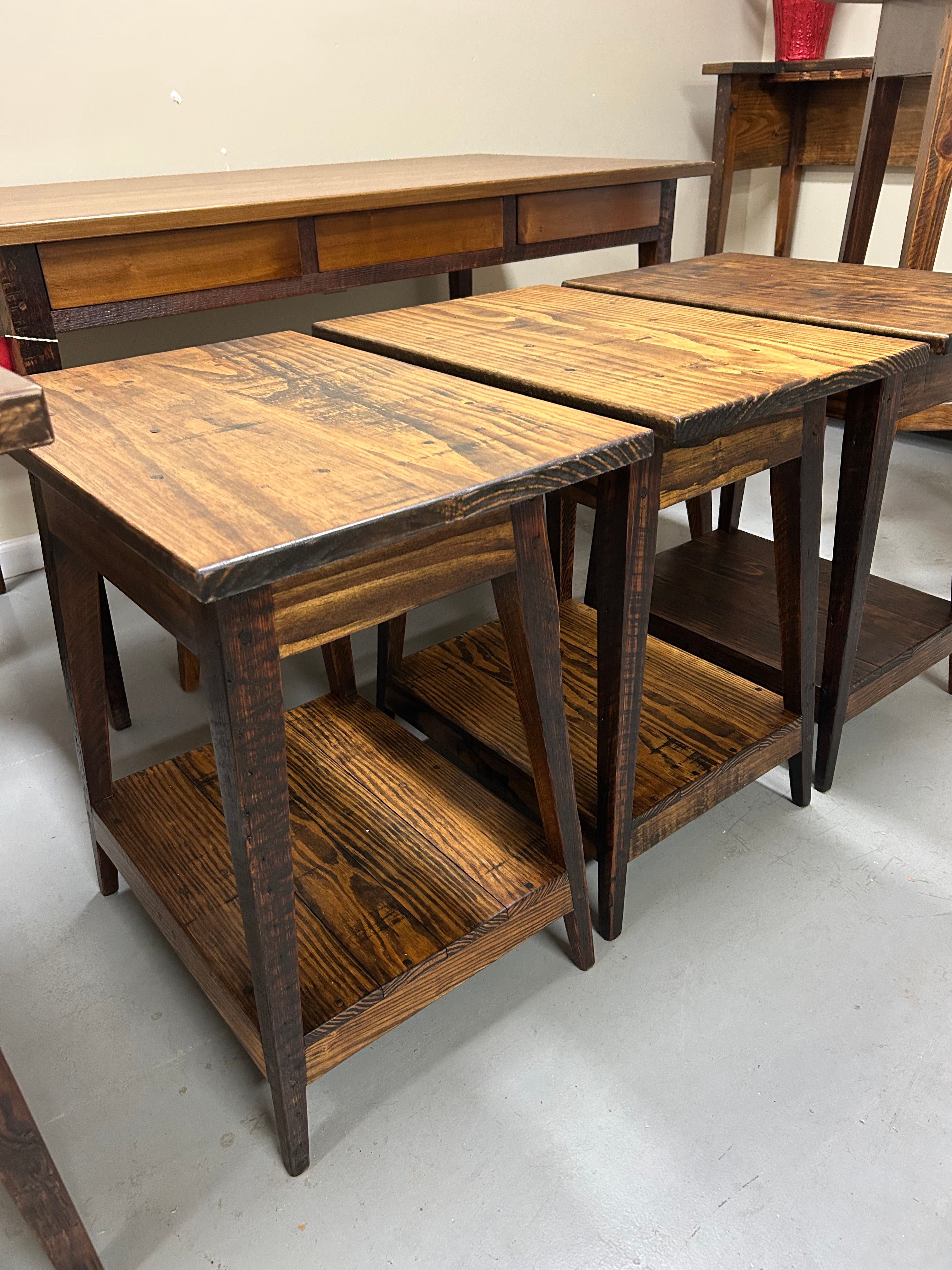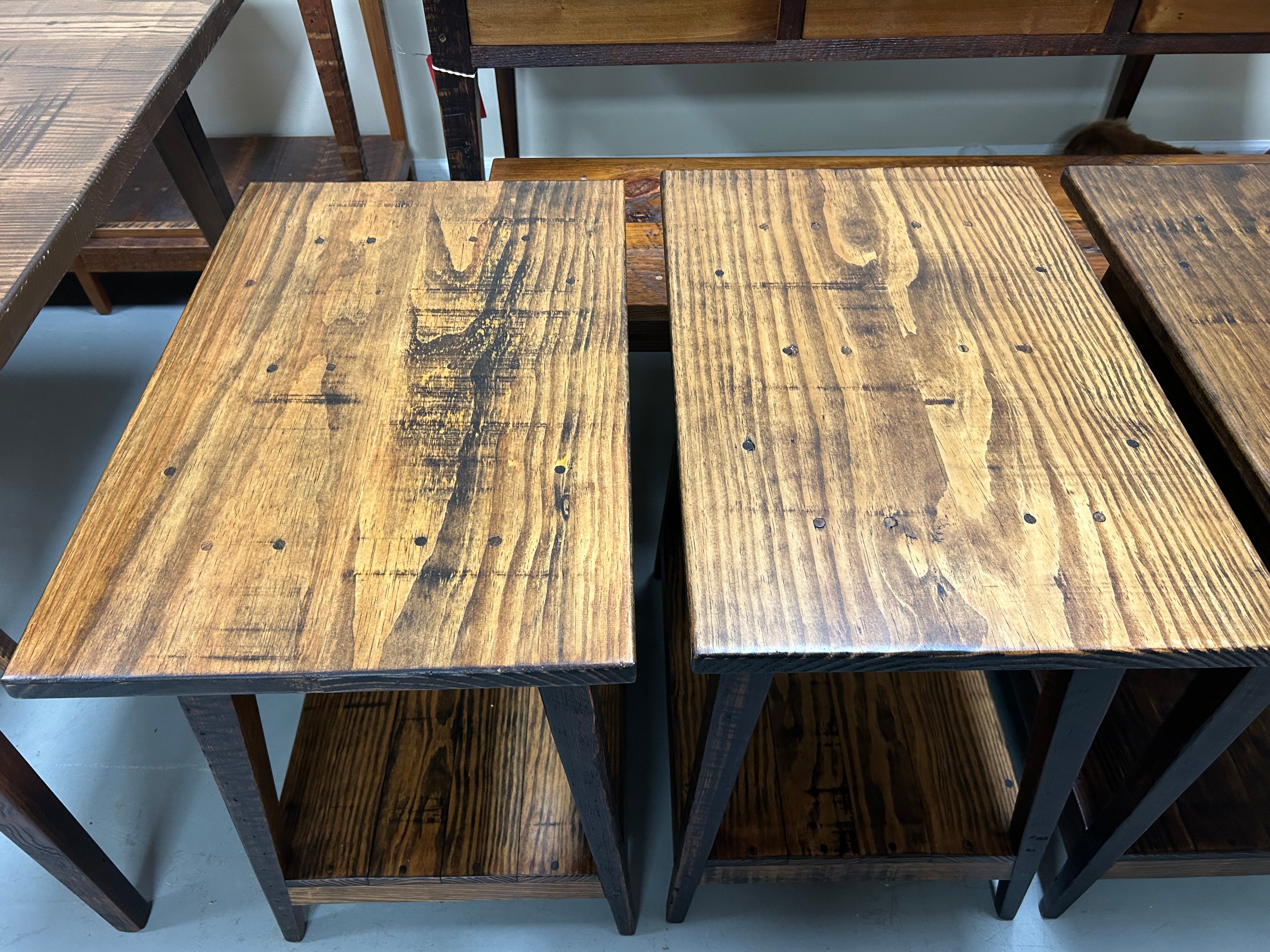 Side Tables - Pair, made with local yellow pine and antique heart pine - mid/low level shelf